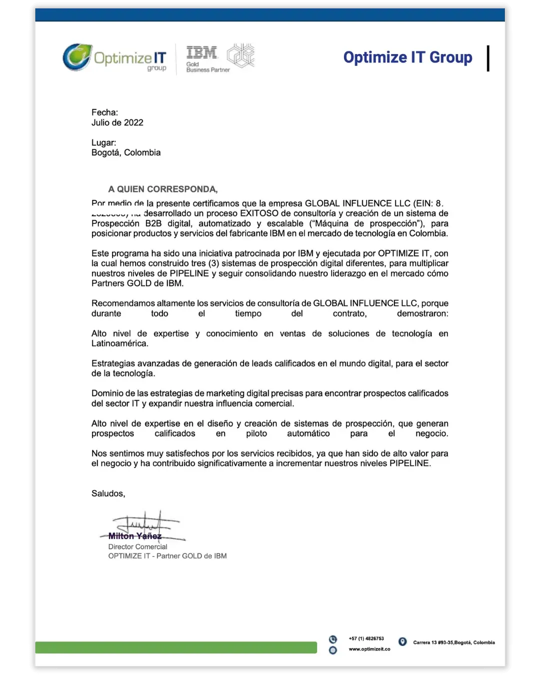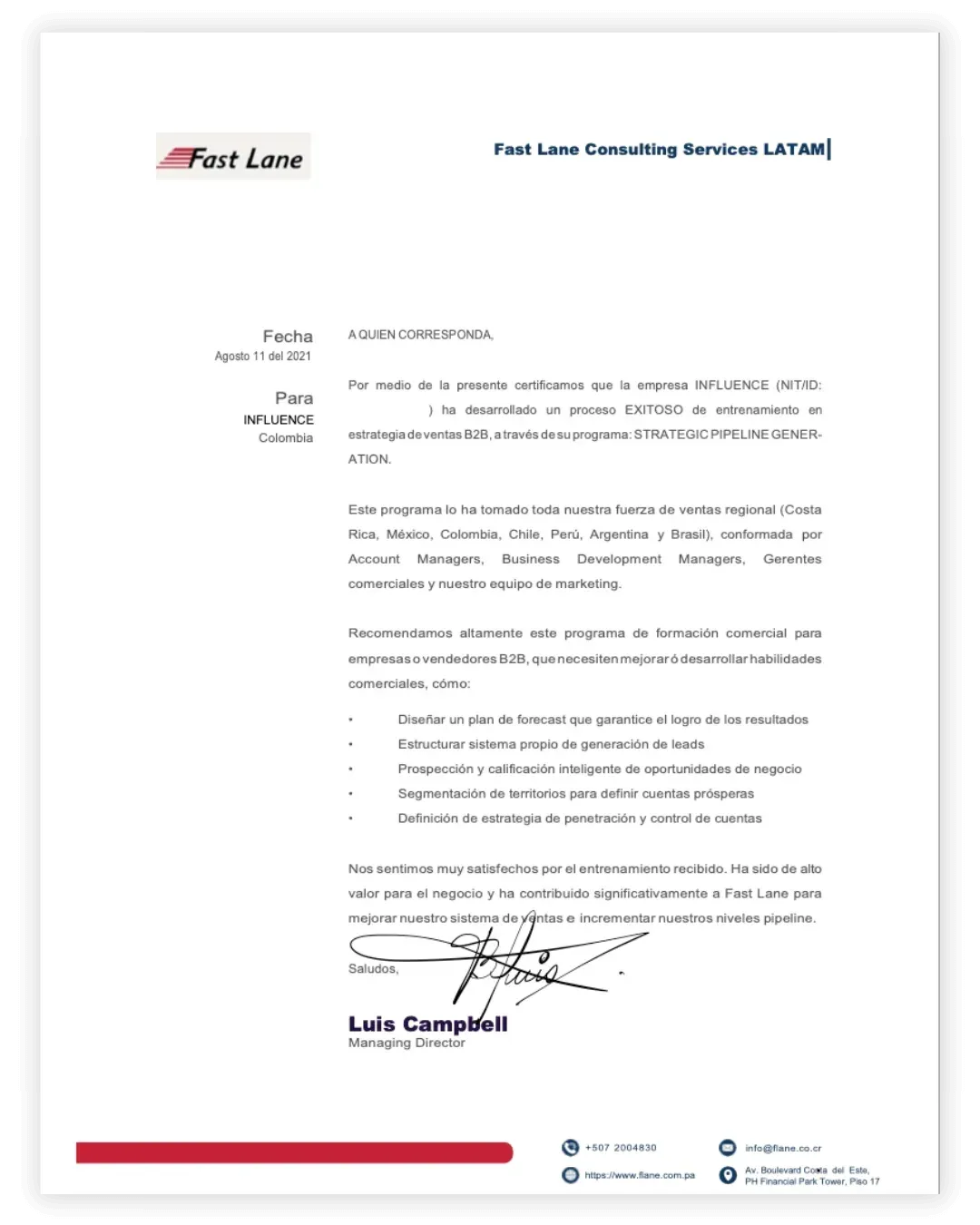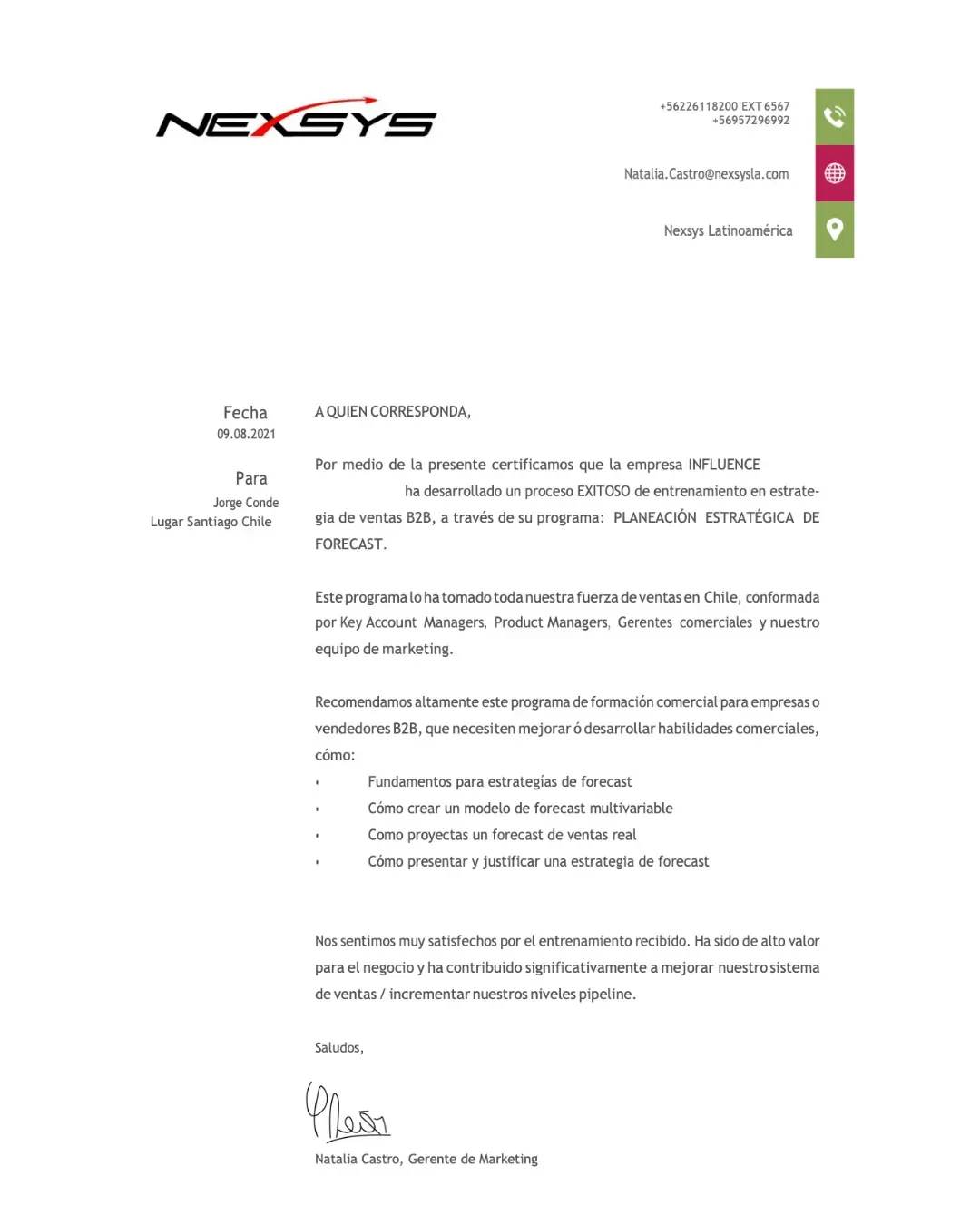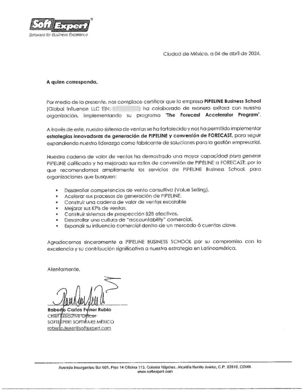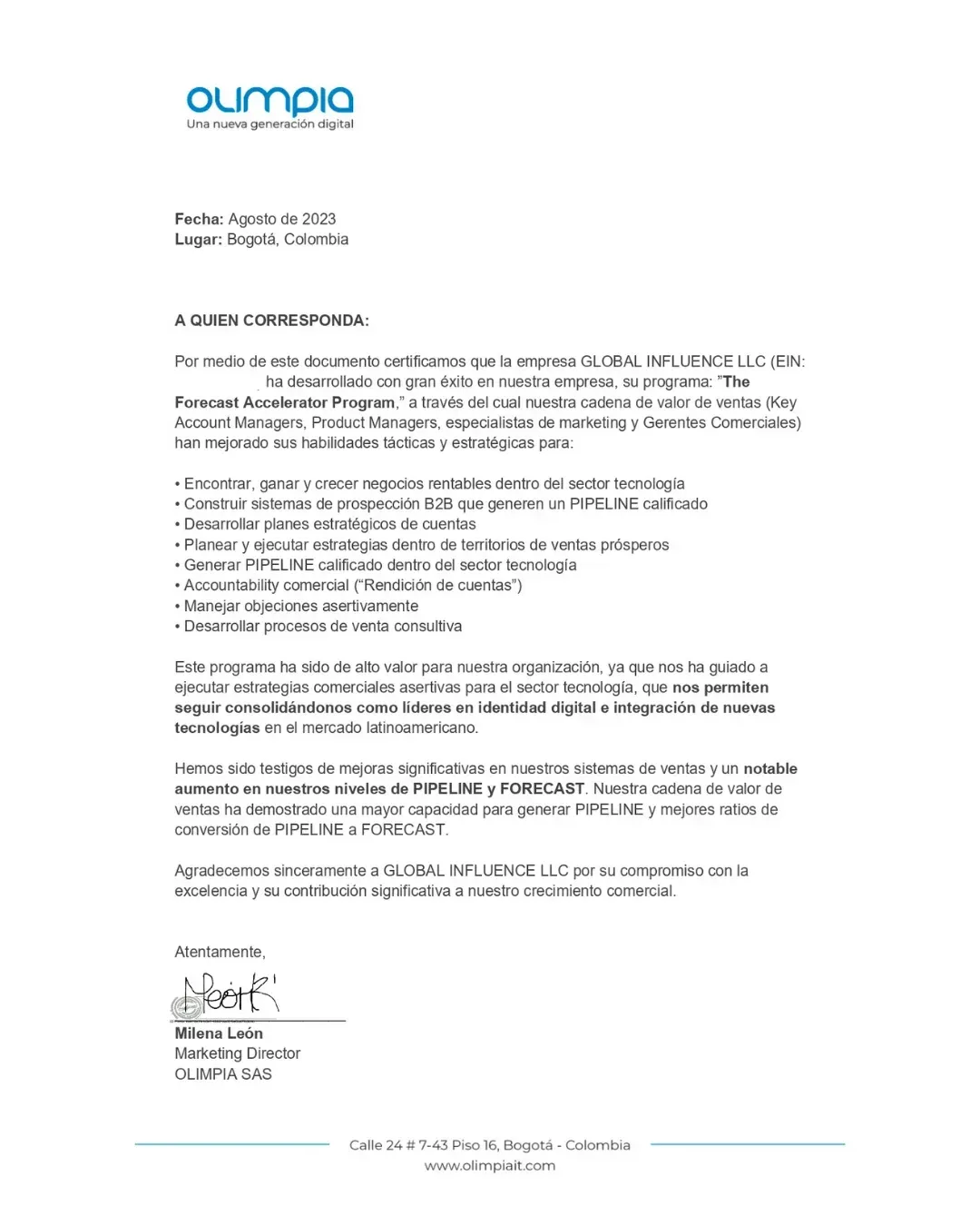 ... Ha contribuido significativamente a mejorar nuestro sistema de ventas e incrementar nuestro PIPELINE.